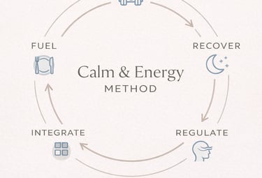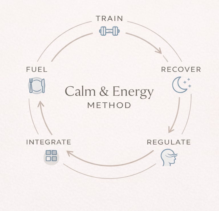 The Calm & Energy Method provides structure, clarity and alignment — reducing friction while supporting sustainable strength, aesthetics and overall life quality.